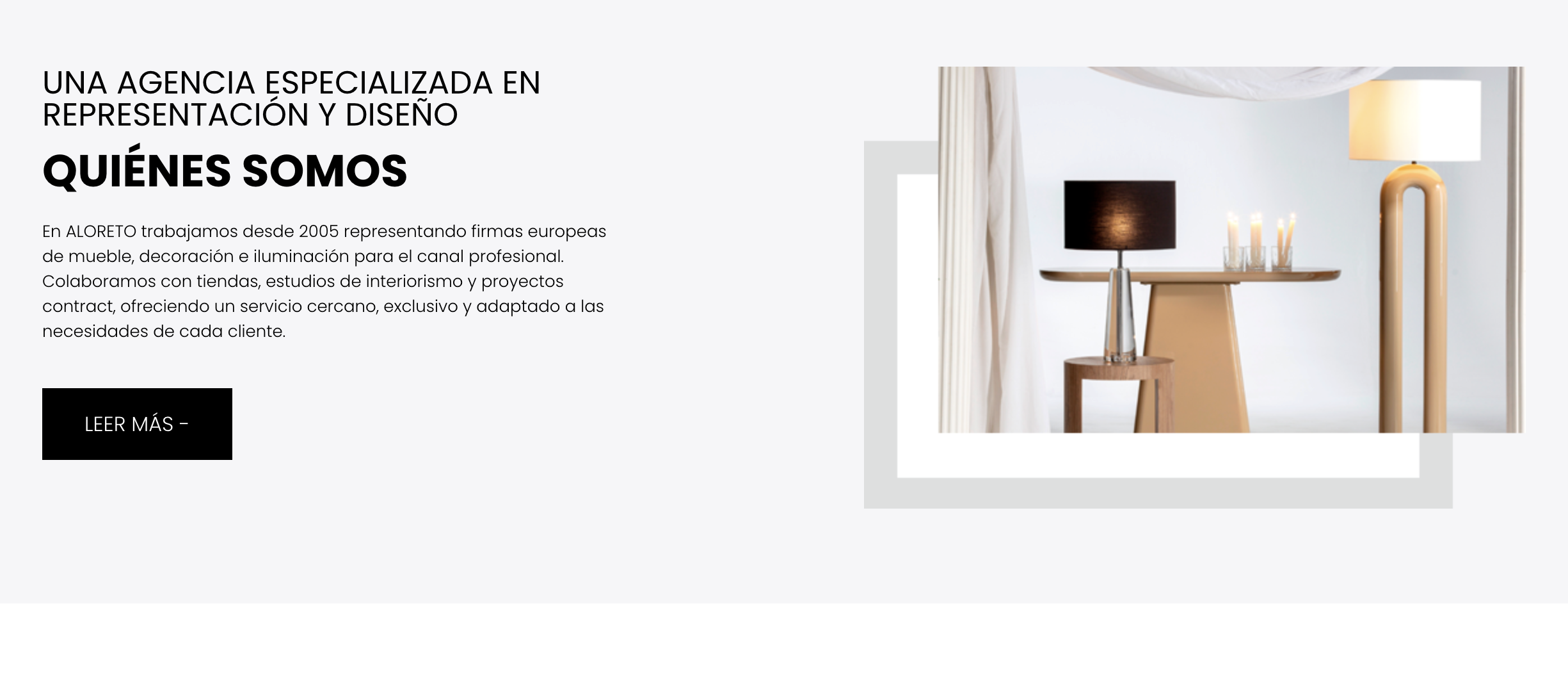 ALORETO es una agencia especializada en la representación de firmas europeas de mueble, decoración e iluminación, dirigida exclusivamente a profesionales del sector del hábitat. Fundada en 2005 por África López-Reina, la empresa nace con el objetivo de convertirse en un nexo sólido entre las mejores marcas de diseño y los prescriptores del sector.