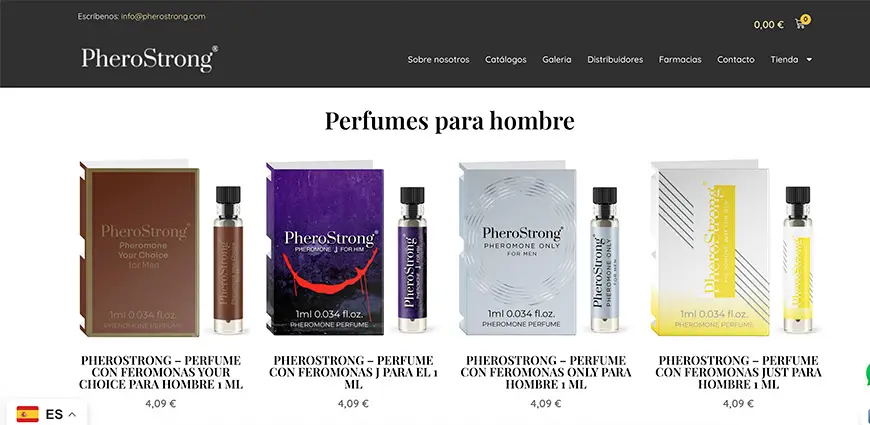 Pherostrong es un eCommerce especializado en perfumes con feromonas para hombre y mujer, desarrollado con un diseño a medida y maquetado por completo con Elementor.